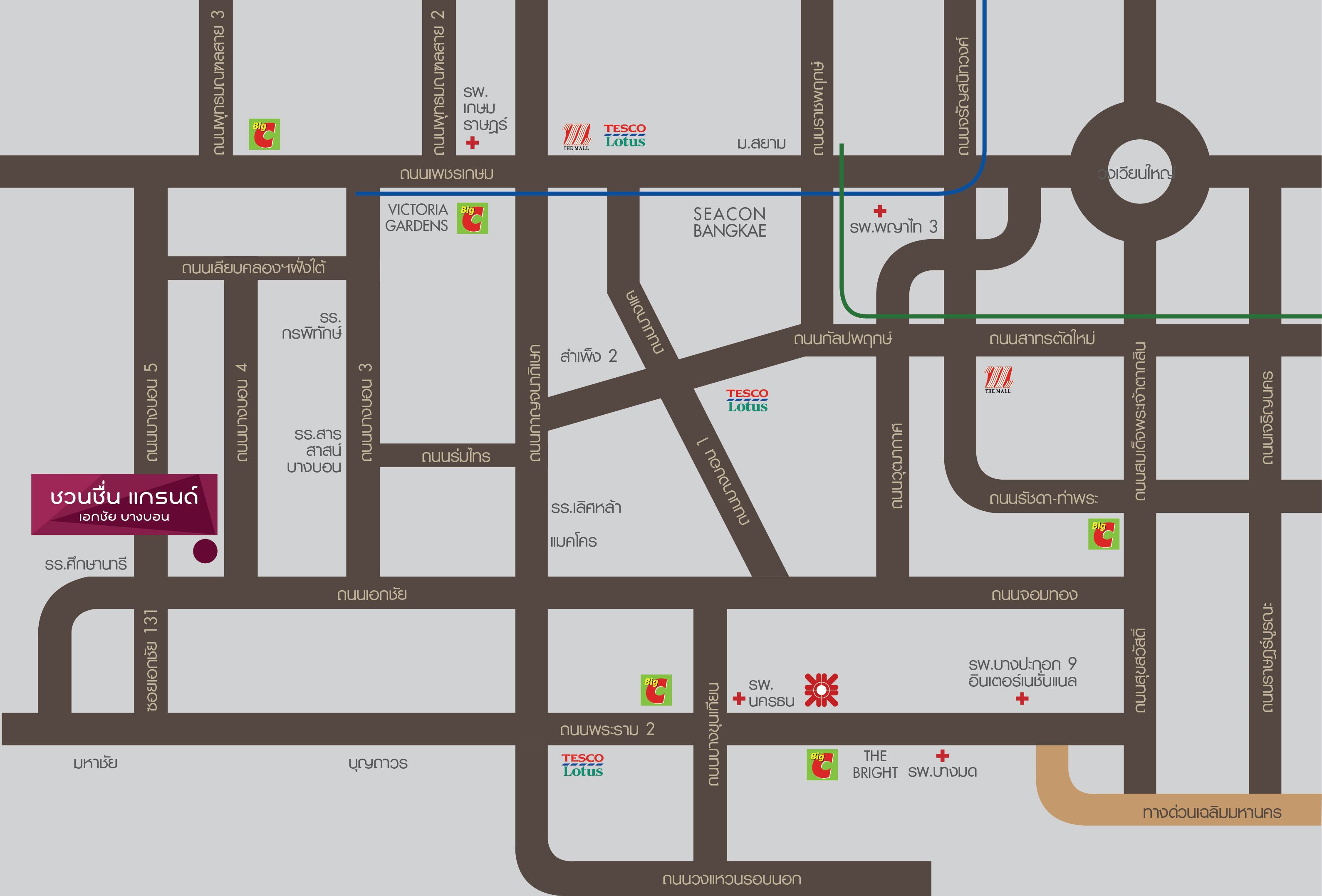 ทำเลที่ตั้ง ถนนบางบอน 4 (300 ม. จากถนนเอกชัย) ใกล้ถนนวงแหวนกาญจนาภิเษก และ ถนนพระรามสอง